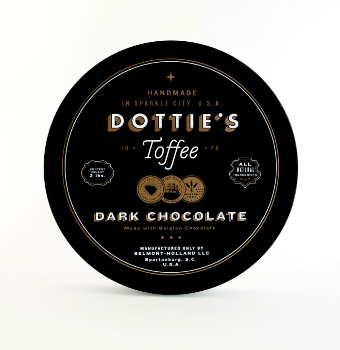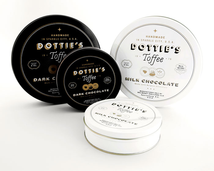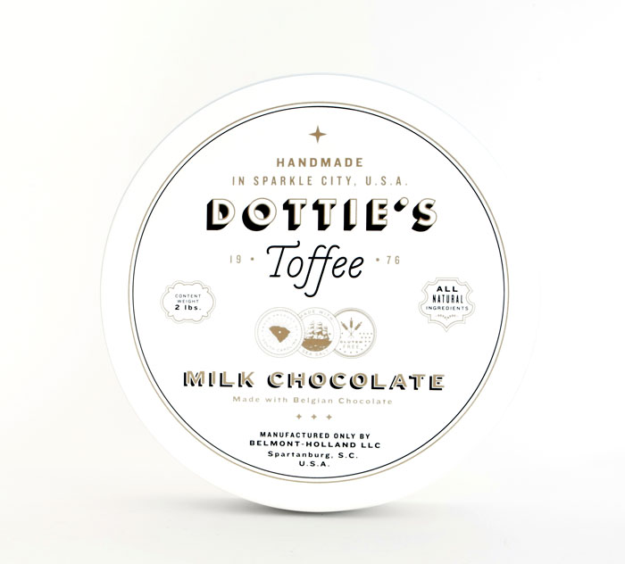 “多蒂的太妃糖是一個(gè)慶祝一切熟悉的甜蜜。點(diǎn)開始制作自己的太妃糖1976和她愛她的手藝是會(huì)傳染的。她的孫子尼克進(jìn)行太妃糖制作傳統(tǒng)的這些天,他賣到全國范圍內(nèi)的零售商。我們創(chuàng)造了一個(gè)品牌是甜的,復(fù)雜多變的太妃糖本身既懷舊與當(dāng)代。明亮,過渡色對(duì)比的黑色,白色和灰色以及大膽,簡單的文字定義的品牌在包裝,抵押和網(wǎng)站。